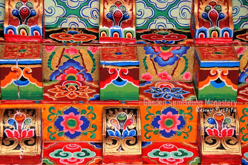 Disini kita dapat berjalan-jalan dan melihat para Monk melakukan aktivitas sehari-hari. Kita juga dapat berjalan-jalan di sekitar tempat tinggal para Monk. Menurut Wikipedia, struktur biara utama di Ganden Sumtseling Monastery mirip dengan Biara Potala di Lhasa, Tibet. Memiliki rooves tembaga berwarna emas. Jujur itu sebuah karya seni yang sangat indah-saya bahkan tidak peduli tentang sejarahnya 😊 saya hanya mencintai perjalanan dan melihat tempat-tempat baru dan hal-hal yang mengagumkan. Pemandangan yang membuat saya tidak mau berhenti menikmati nya. Kami berkeliling dan mengambil beberapa poto untuk mengabadikan pesona kuil ini.