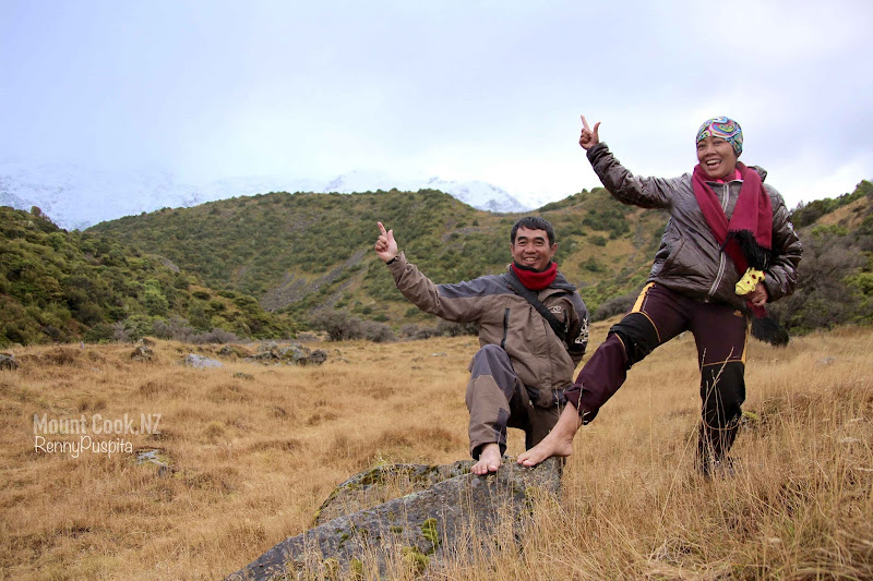 Menikmati indahnya pesona Mount Cook National Park membawa kami semangat menuju kaki pegunungan Alpen Selatan. Tidak perlu menjadi seorang pendaki gunung yang hebat untuk berinteraksi dan menikmati keindahan pemandangan yang menakjubkan! Hanya berjalan-jalan santai atau tramping istilah Kiwi-nya, saya sudah bisa menikmati pemandangan indah terhampar gunung tertinggi Selandia Baru dan gletser terpanjang. Mengagumkan.